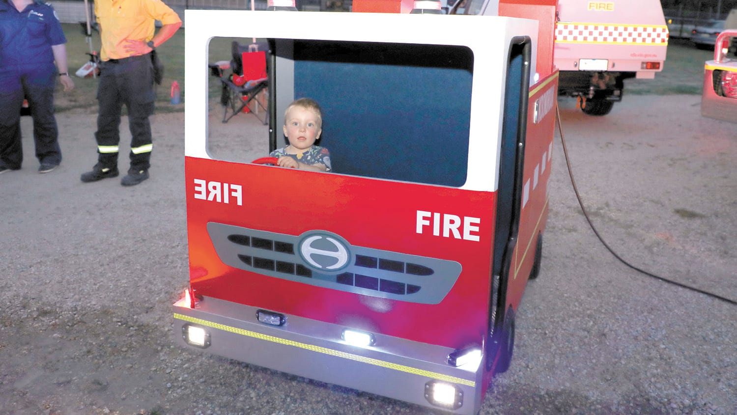 Stepping outside the pavilion, I was greeted with the flashing red and blues, but it wasn’t the fuzz, it was young Winston Lambert, who had found the key to the latest addition in the Koondrook CFA line-up. This pint-sized tanker was complete with lights, sirens, working hose reels and best of all, was made locally.